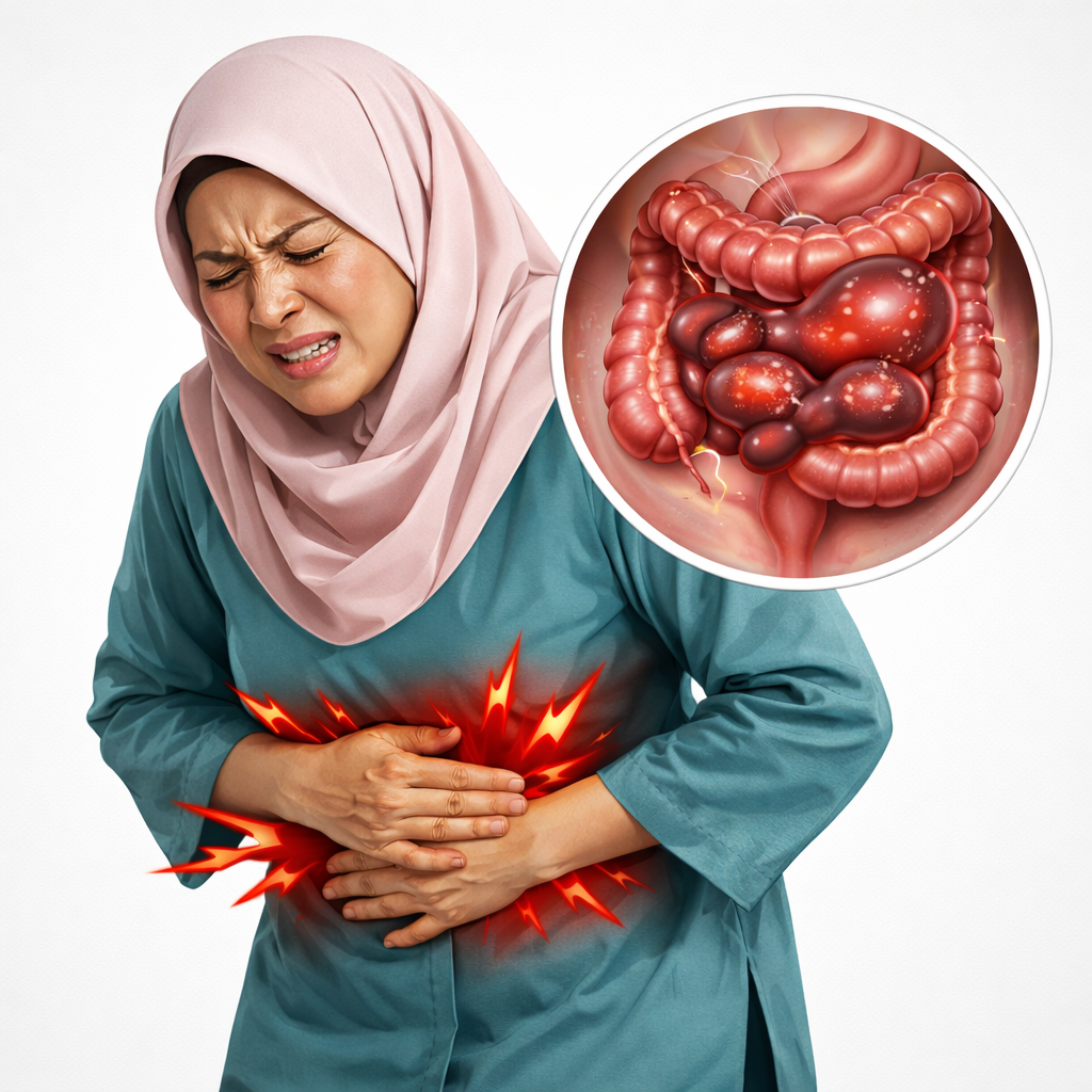 Aliran pembuangan terganggu kerana sistem dalaman tidak stabil akibat usus yang terbeban.