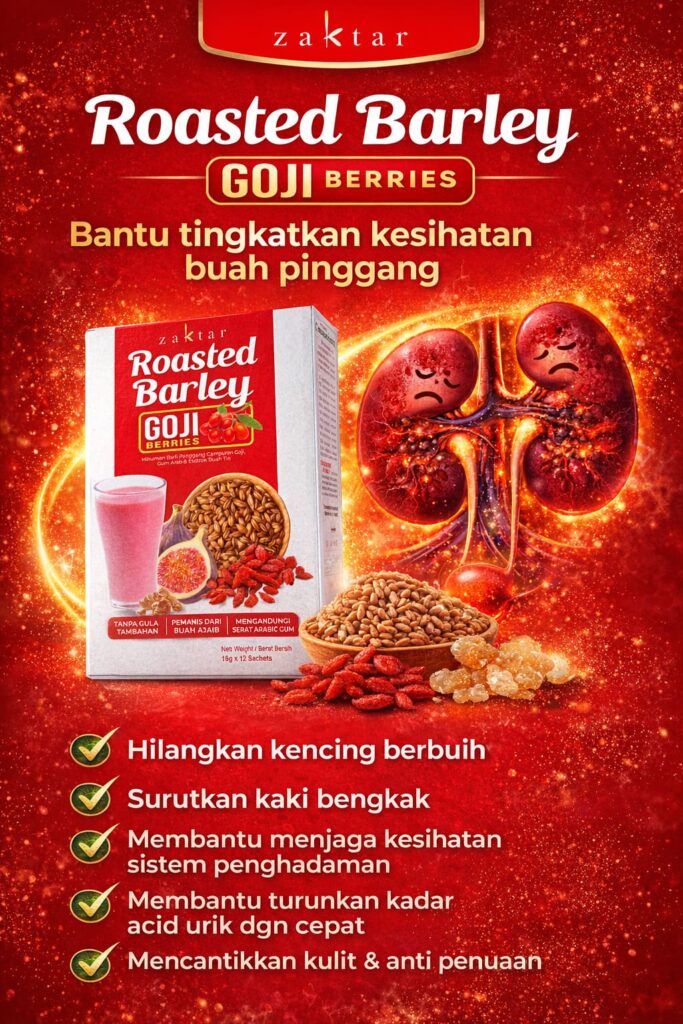 Roasted Barley Goji Berries ialah formulasi nutrisi semula jadi yang dirumus khas untuk membantu mengurangkan beban dalaman badan, terutamanya apabila usus berada dalam keadaan stress dan memberi tekanan berpanjangan kepada buah pinggang.